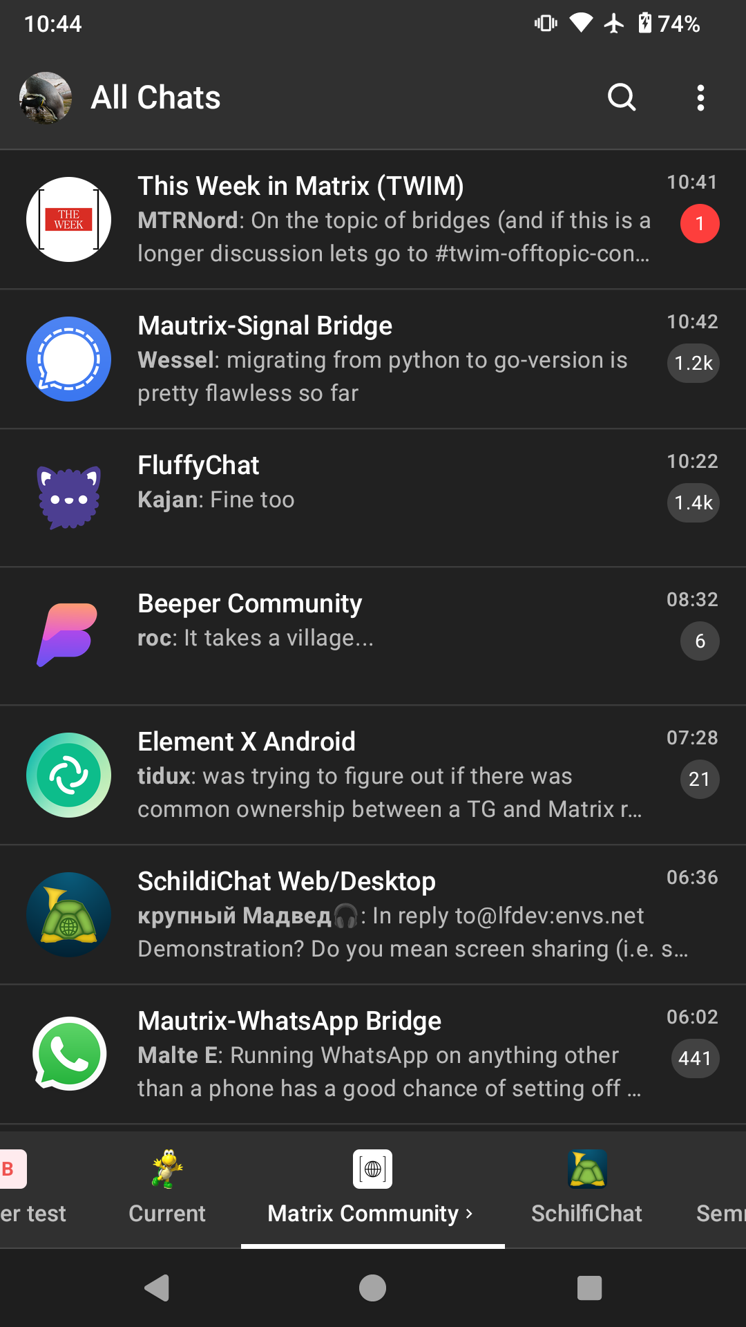 This situation has changed towards the end of last year, and work has started on SchildiChat Next, a SchildiChat fork of Element X for Android. It's still very much work-in-progress (it even still welcomes you to "Element" during onboarding) and misses lots of our original features found in the old codebase. Not all of these features will come back, but we may add some new ones in return. Like usually, we focus on whatever makes sense to us and that we wished that Element had that's in our scope to implement.