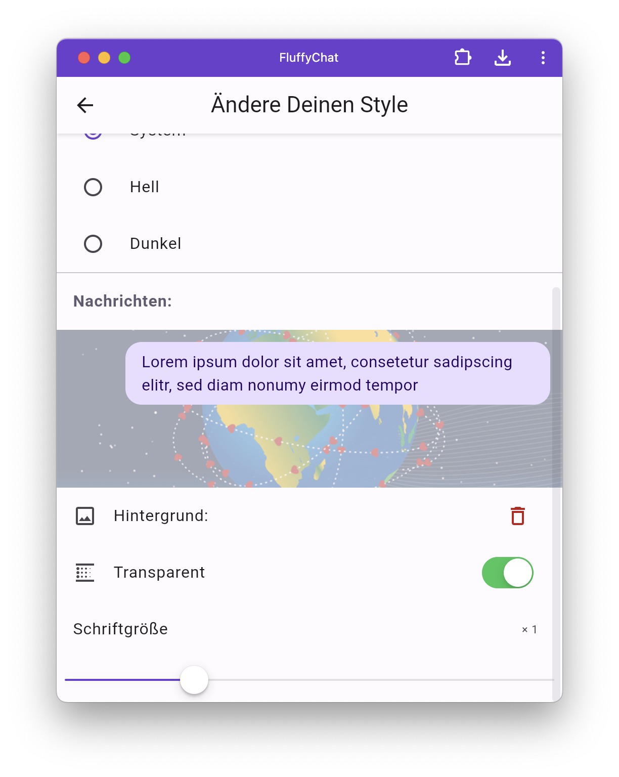 FluffyChat v1.17.3 has been released πŸŽ‰ with a bunch of bugfixes and the return of the wallpaper feature. This time it works on all platforms and is synchronized between your sessions.