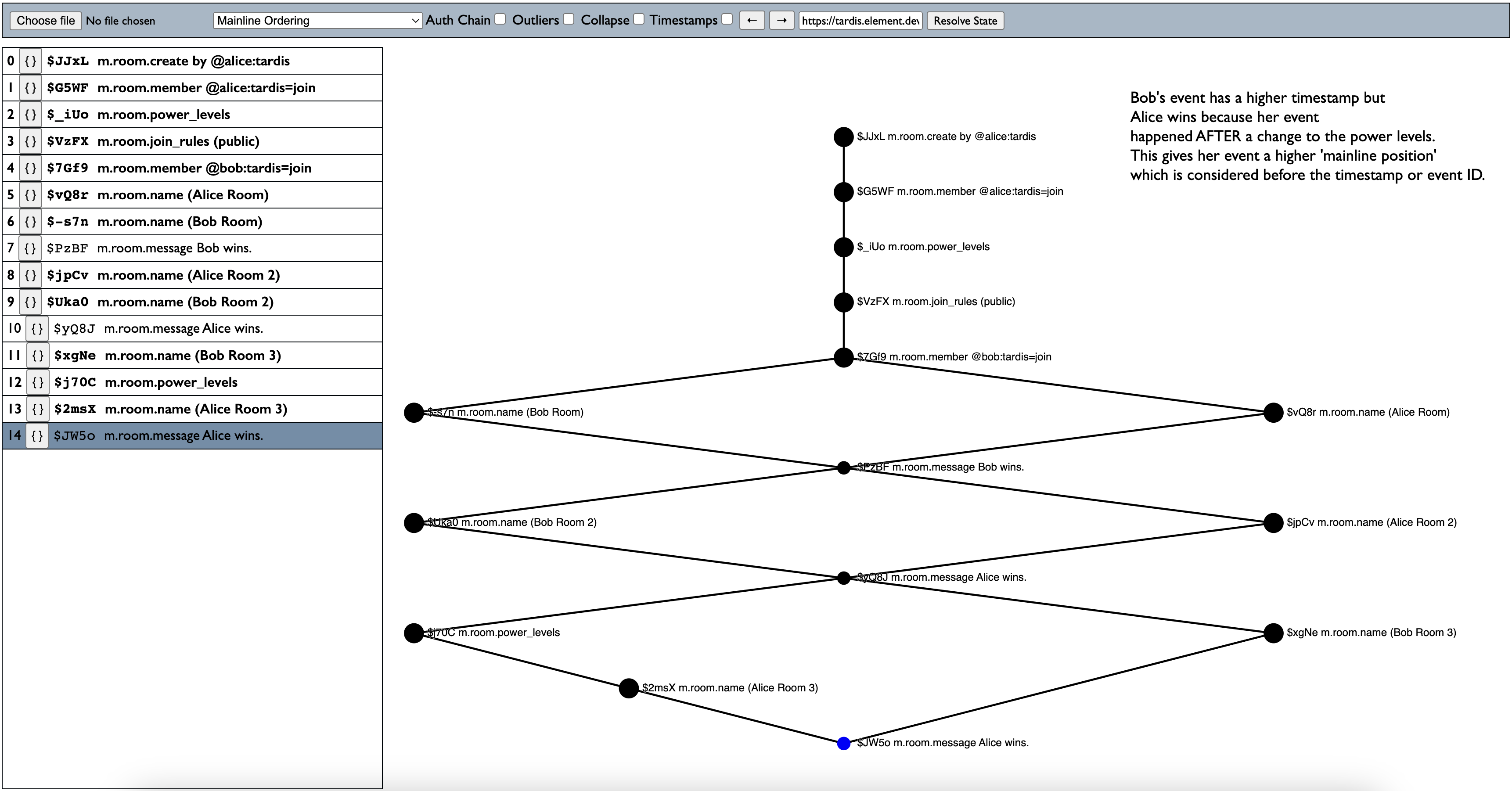 tl;dr - there's a new room DAG visualiser called TARDIS that can do real state resolution.