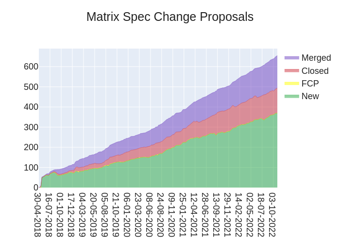 Here's your weekly spec update! The heart of Matrix is the specification - and this is modified by Matrix Spec Change (MSC) proposals. Learn more about how the process works at https://matrix.org/docs/spec/proposals.