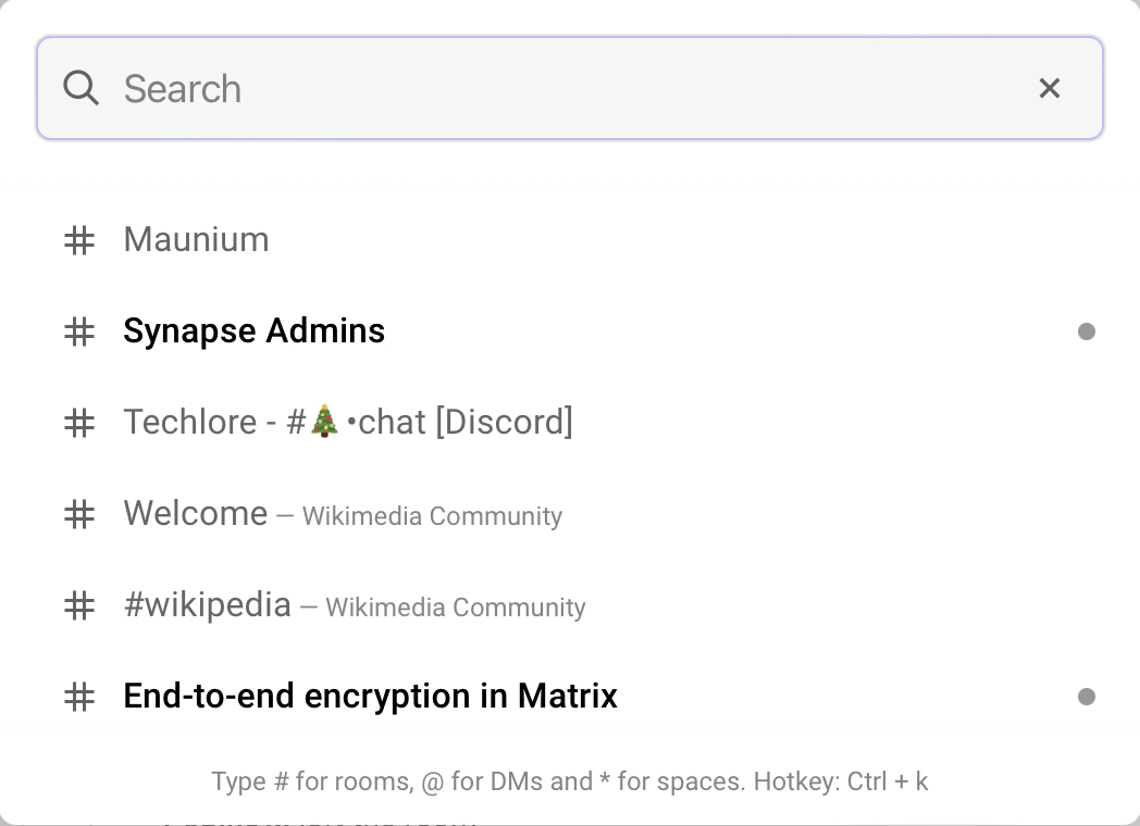 • First milestone reached on Information Architecture! To try it out, enable “Threaded messaging”, “Use new room breadcrumbs” and “New spotlight search experience” in the Labs settings.