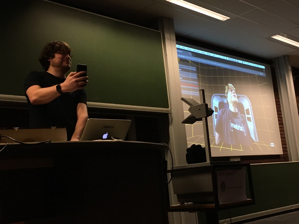 However, we still believe that Matrix is the missing link for decentralised communication within VR/AR, and we were lucky enough to get a talk about Matrix+WebRTC+WebVR accepted to the Real-Time Communications Devroom at FOSDEM 2018! So, given a new chance to show the world how cool Matrix-powered comms could be in VR/AR, myself and Dave Baker went on a (very) quick detour to update the demo a little...