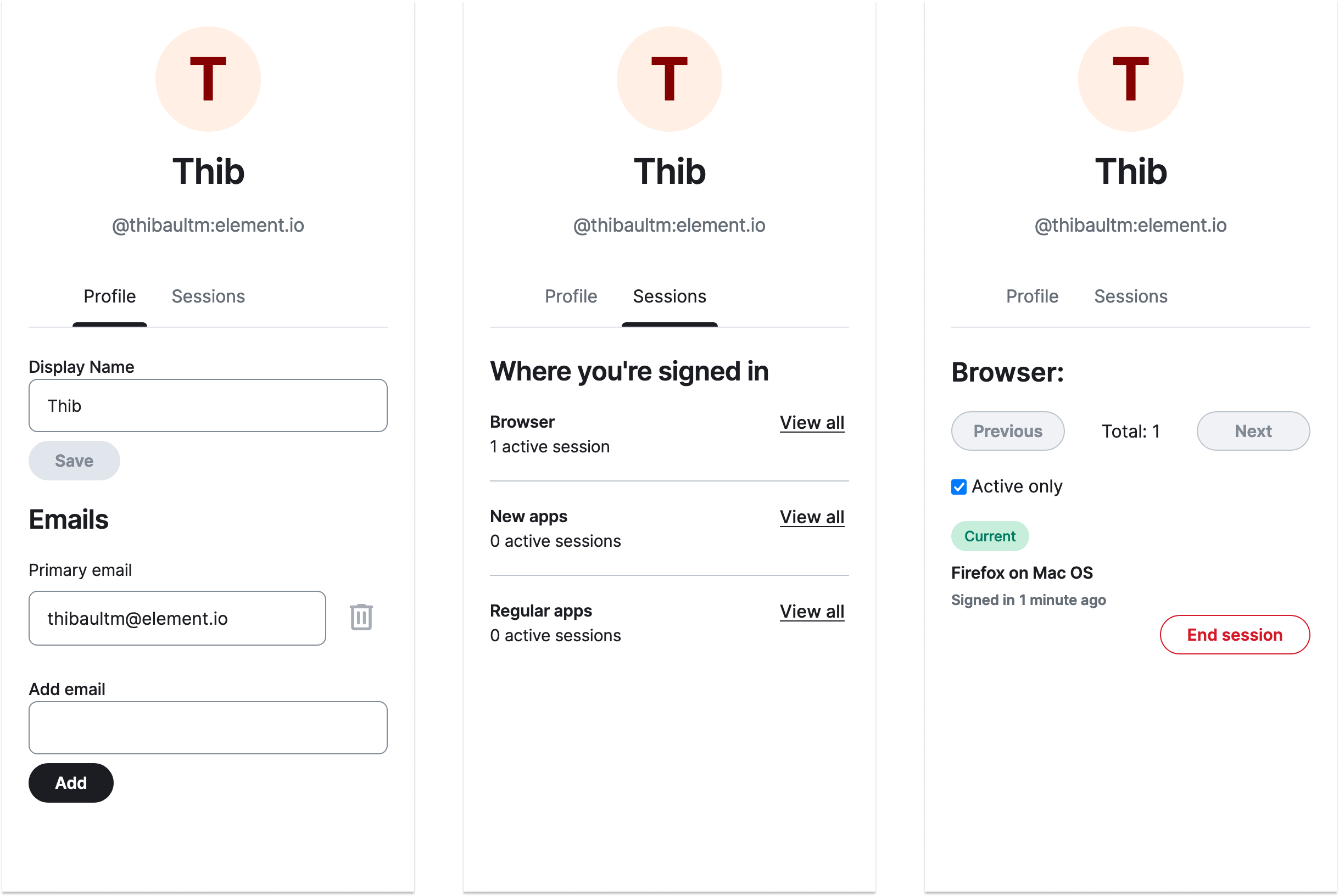 Finally, last but not least, we’re proud to announce that the project to replace Matrix’s venerable existing authentication APIs with industry-standard Open ID Connect in Matrix 2.0 has taken a huge leap forwards today, with matrix-authentication-service now being available to add Native OIDC support to Synapse, as well as Element X now implementing account registration, login and management via Native OIDC (with legacy support only for login/logout).