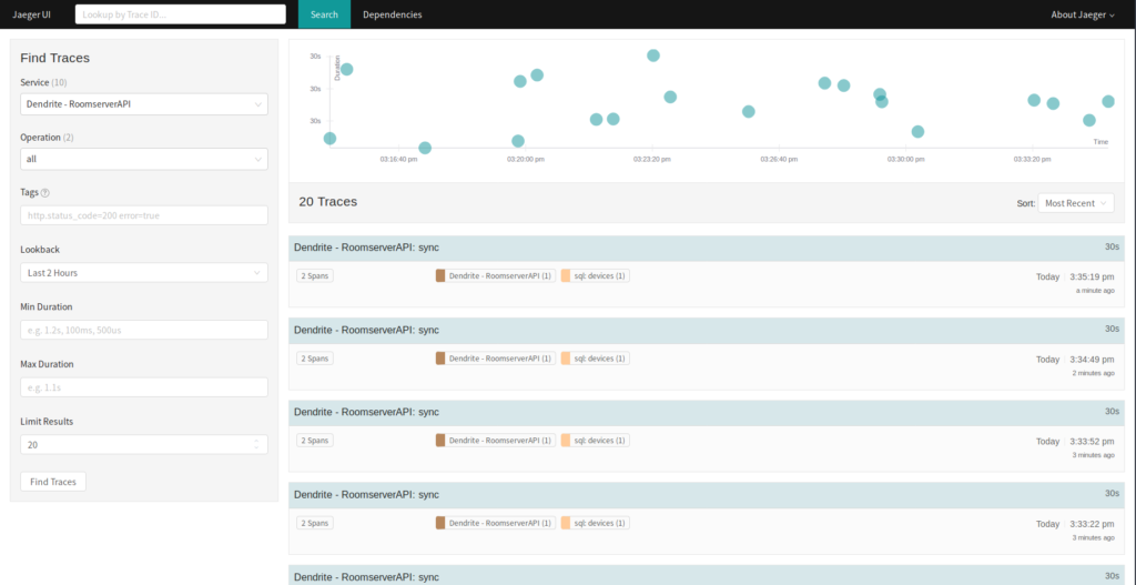 In Dendrite, we are taking this one step further by introducing OpenTracing, a language and platform-agnostic framework for tracking the journey of an endpoint call from incoming request to outgoing response, with every method, hierarchy change and database call in between. It will be immensely useful in tracking down performance issues, as well as providing insight into the most critical paths throughout the codebase and where we should focus most of our optimization efforts on. It also comes with a lovely dashboard courtesy of Jaeger: