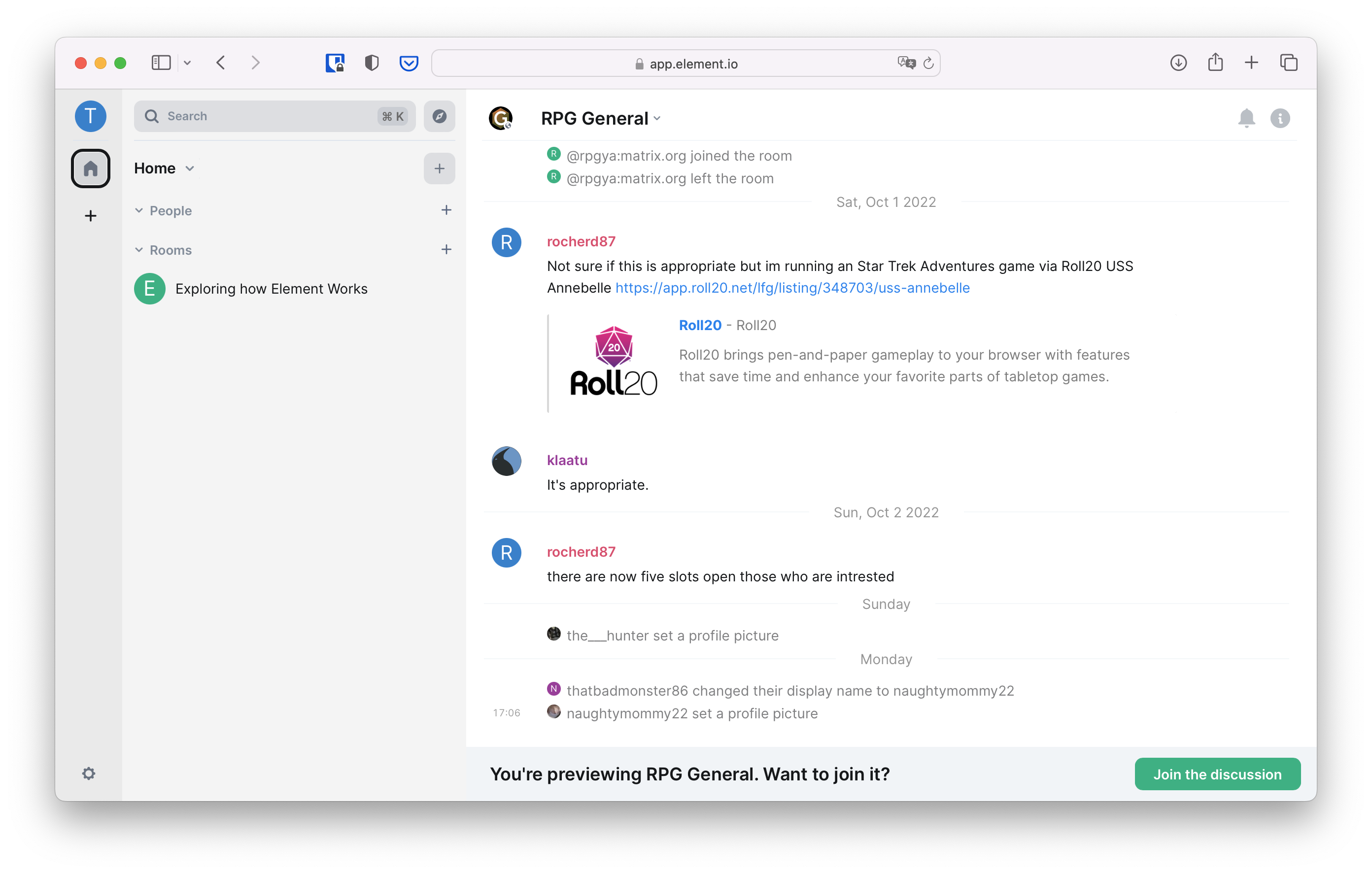 You can click "Join" to join the room, and voilĂ , you're in!